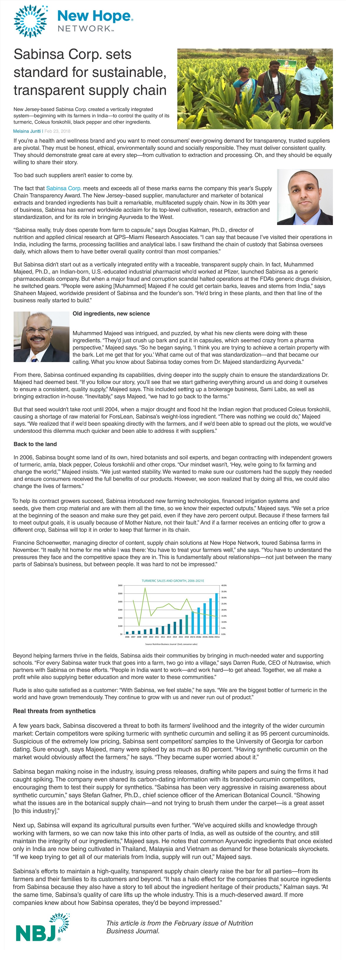 Sabinsa Corp. sets standard for sustainable, transparent supply chain