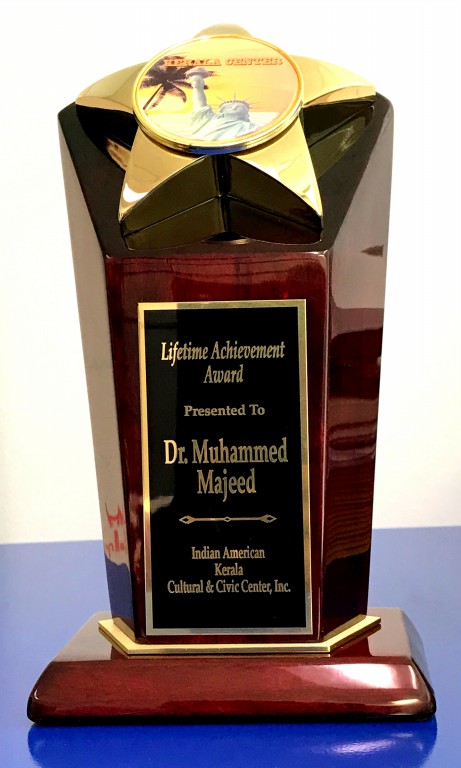 Dr. Muhammed Majeed premiado pelo Reconhecimento de Conquista Vitalícia pelo Centro Cultural e Cívico Indiano Americano de Kerala (IAKCCC)