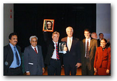 Dr. N. Kalyanam, Presidente de P&D da Sabinsa Corporation, recebeu o prestigioso prêmio em nome do Dr. Majeed do Dr. Thomas Abraham, Fundador e Presidente da GOPIO International.
