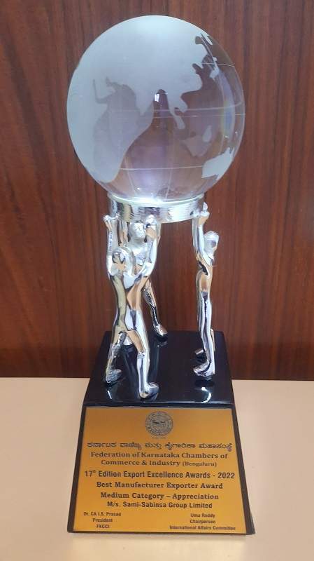 The Federation of Karnataka Chambers of Commerce and Industry (FKCCI) honoured the Sami-Sabinsa Group for its outstanding export performance during an award ceremony held in Bangalore on September 15, 2021. Sami-Sabinsa Group, received the Best Manufacturer Export Award in the Super Large Category for the year 2021. Shri. Murgesh Nirani, Minister for Large and Medium Industries, Government of Karnataka, presented the award.